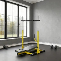 Soozier Vertical Leg Press Machine With Adjustable Leg, Back, And Head Positions, 1 Standard Plate Compatible, Yellow